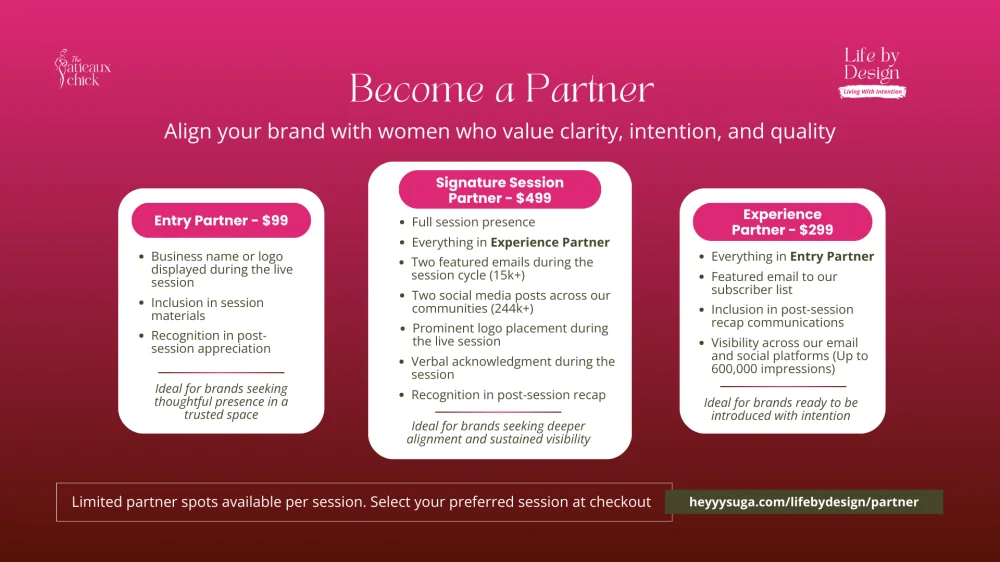 I understand that Life by Design partnerships are values-led and subject to alignment review. I agree to receive partnership-related communication from The Patieaux Chick.